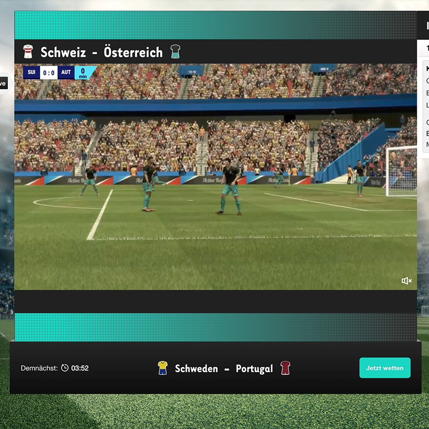 • Nach dem Annahmeschluss erfolgt die Ziehung. Sie bestimmt zufällig, wie das Resultat des anschliessend gezeigten virtuellen Fussballspiels lautet und welches Team das erste und welches das letzte Tor erzielt.