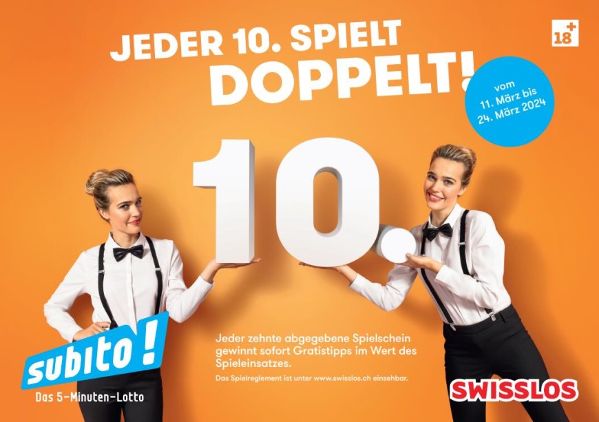 Make the most of an attractive special offer from 29 January to 11 February 2024, thanks to the new «Subito» with subscription plays. For every purchase of a «Subito» subscription play with 5 draws, you get a 6th draw completely free. So even more chances to win!