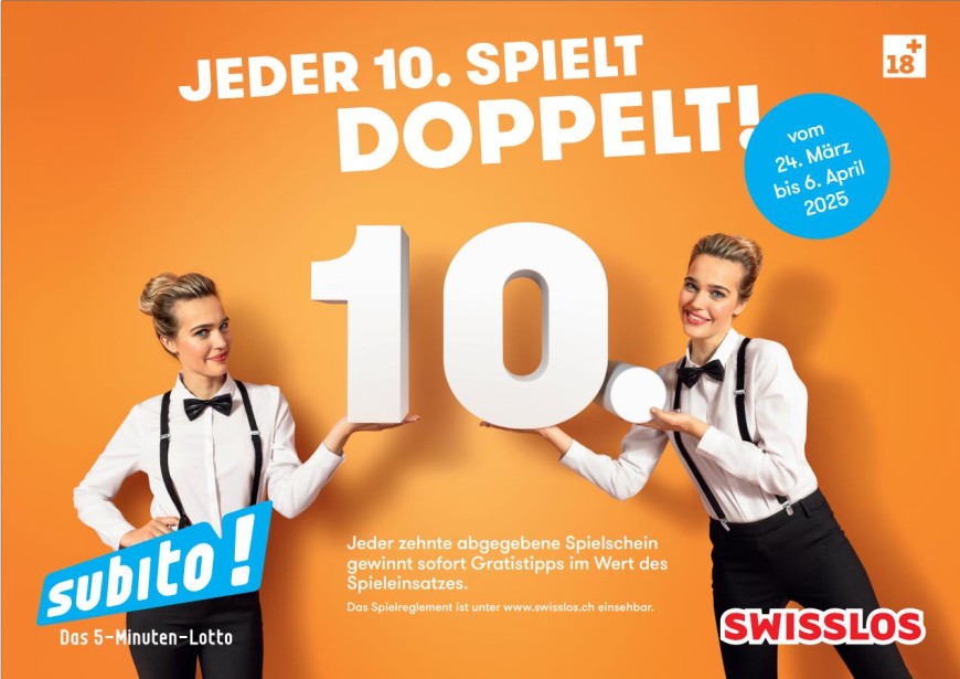 Make the most of an attractive special offer from 27 January to 9 February 2025, thanks to the new «Subito» with subscription plays. For every purchase of a «Subito» subscription play with 5 draws, you get a 6th draw completely free. So even more chances to win!