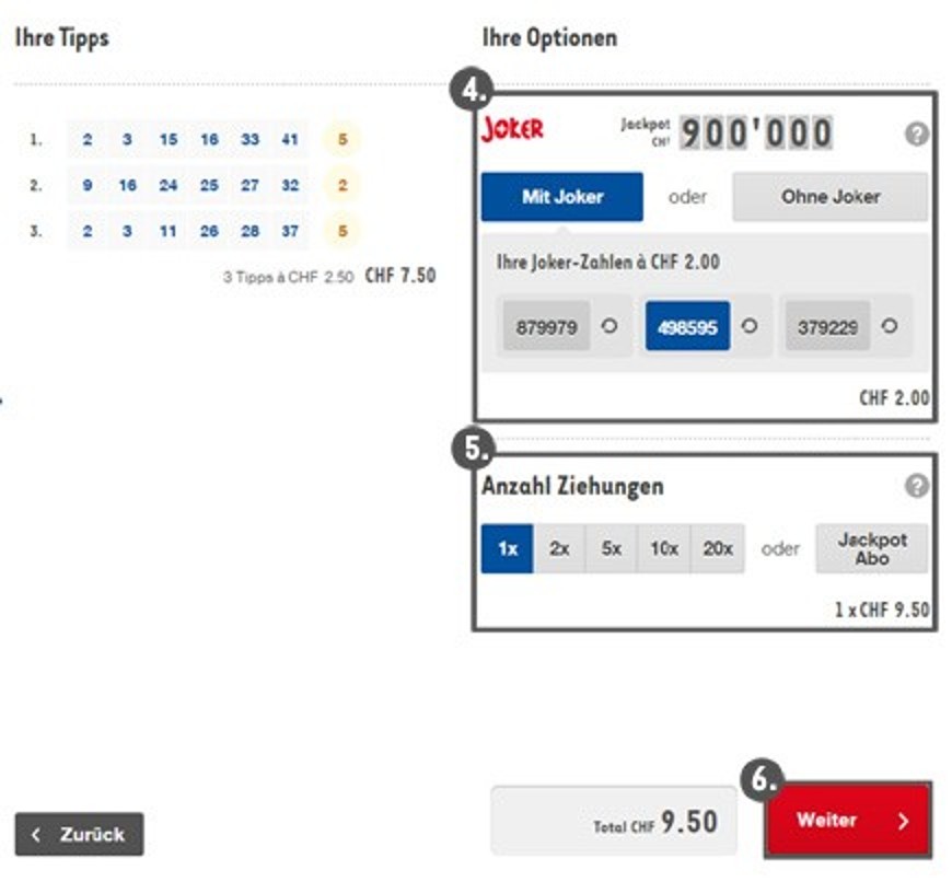 Note: You can also participate in Joker without participating in Swiss Lotto (that is, without entering picks).