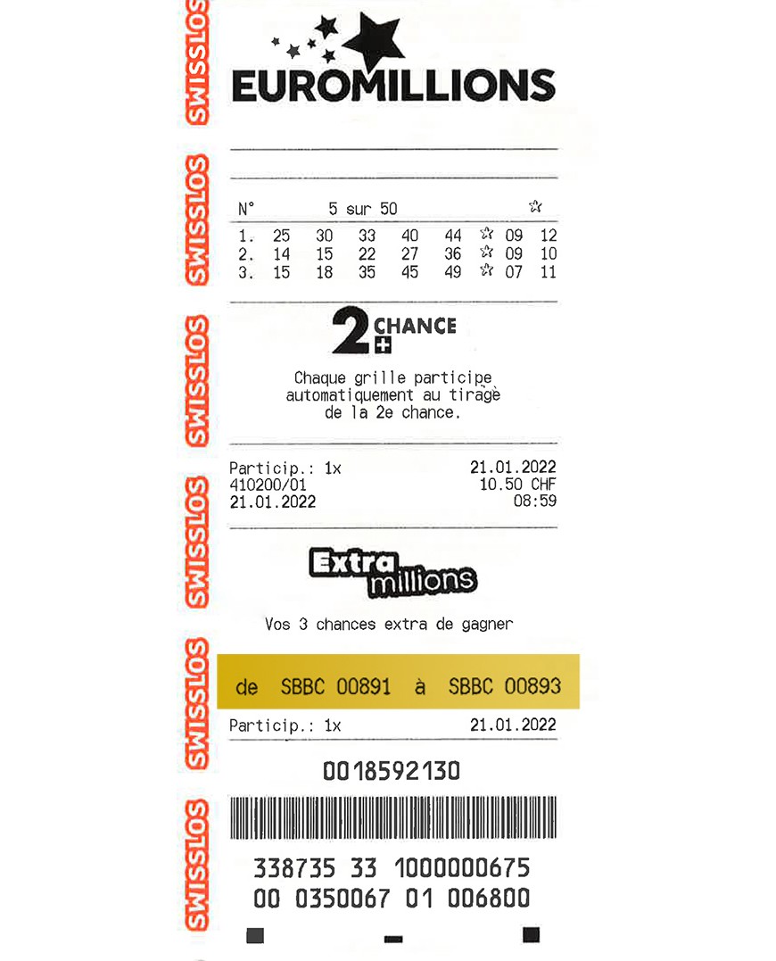 Lors du tirage du 21 janvier 2022, 100 gagnantes ou gagnants seront tirés au sort parmi tous les codes de participation. Les joueurs dont le reçu de participation comportera un des 100 codes gagnants remporteront la somme de 1 million*. Les codes gagnants tirés au sort seront publiés avec les numéros EuroMillions sur la page internet de Swisslos.