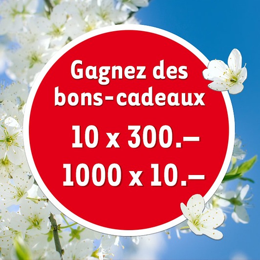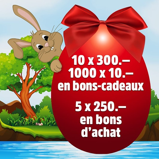Swisslos tire au sort 10 x 300 francs et 1000 x 10 francs en bons-cadeaux! De plus, nous tirons au sort parmi les plus grands chasseurs 5 bons d’achat d’une valeur individuelle de 250 francs.