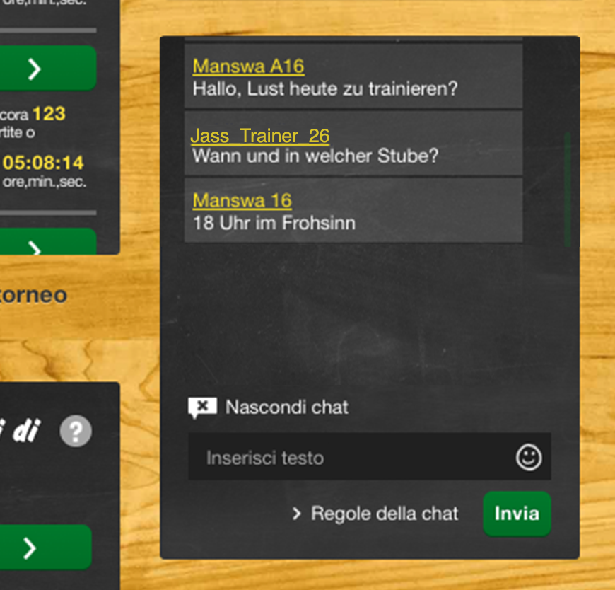 Durante una smazzata di jass la funzione di chat è disattivata.